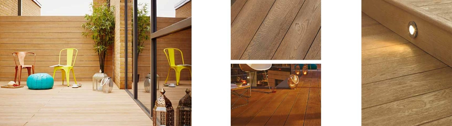 Coppered Oak offers a rich autumnal finish with profound depth of color, evoking the look of high-quality hardwoods like ipe or teak. Its russet-brown shade brings natural vibrance, texture, and tone to your relaxing outdoor space, molded from smooth, organic timbers.